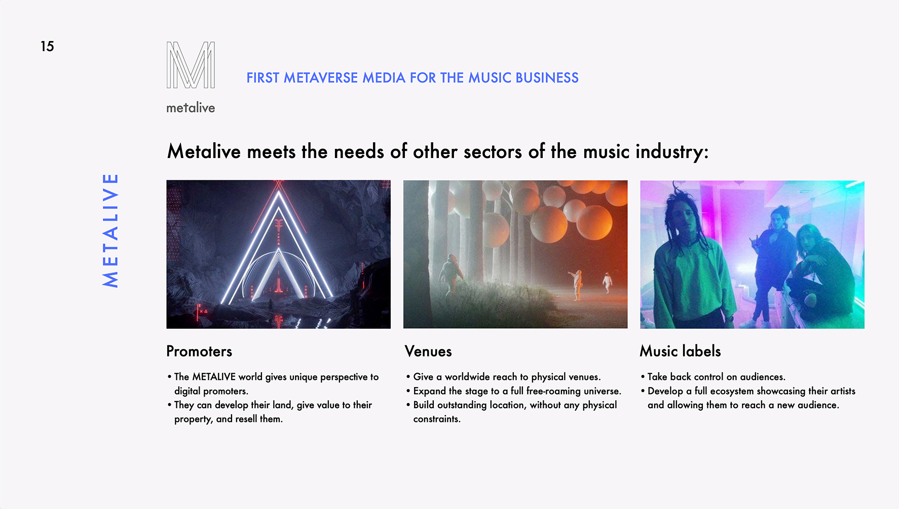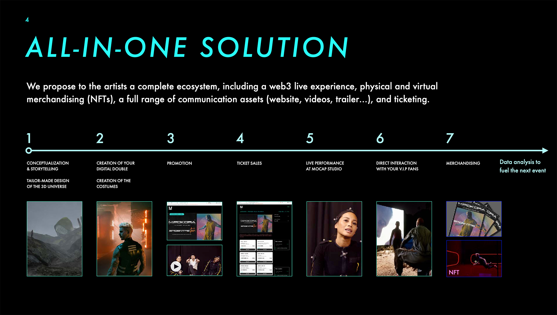 I designed the complete brand identity — logo, visual system, and campaign key visuals — along with the website, prospection decks, and fundraising deck. The visual language is dark, cinematic, and unapologetically high-end — built to stand alongside the artists and brands we work with.